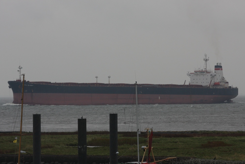 Massengutfrachter elbabwärts vor Cuxhaven-Altenbruch am 25.09.2013