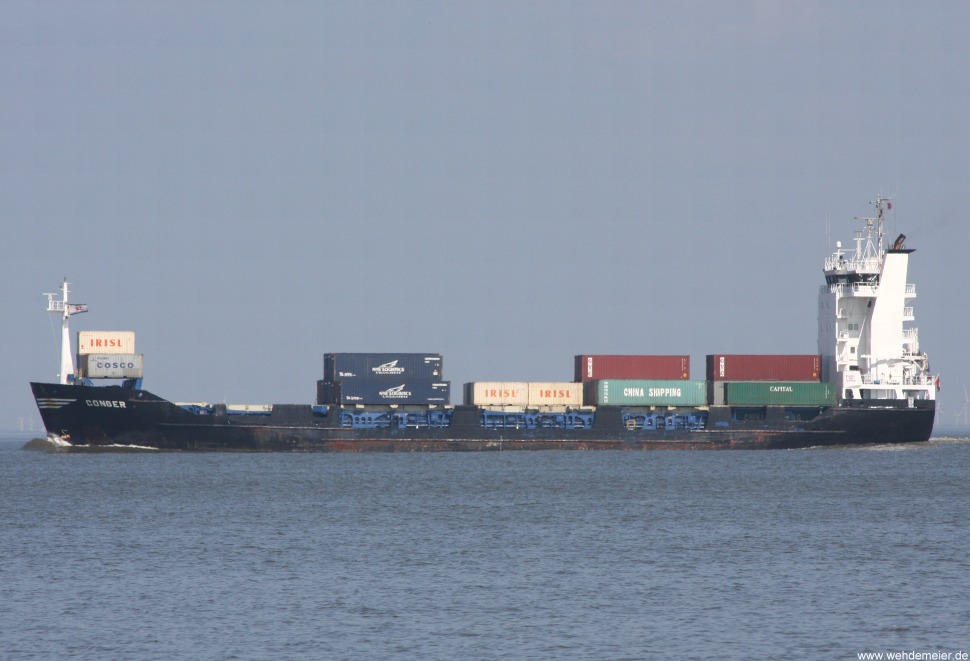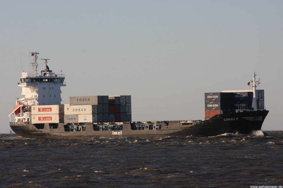 Frachtschiff elbabwärts vor Cuxhaven-Altenbruch am 09.04.2009