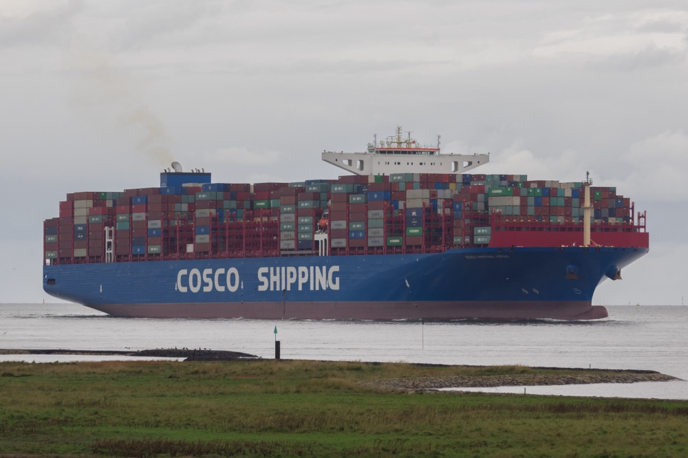 Containerschiff elbaufwärts vor Cuxhaven-Altenbruch am 23.09.2018