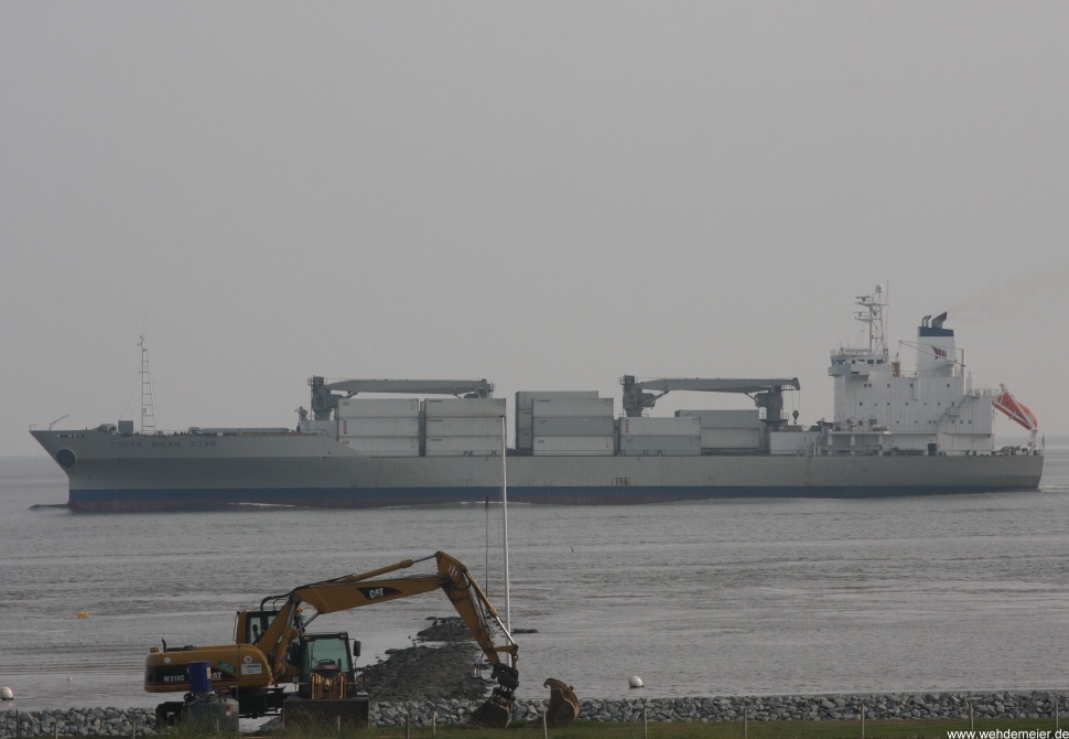 Frachtschiff elbabwärts vor Cuxhaven-Altenbruch am 14.08.2010 |