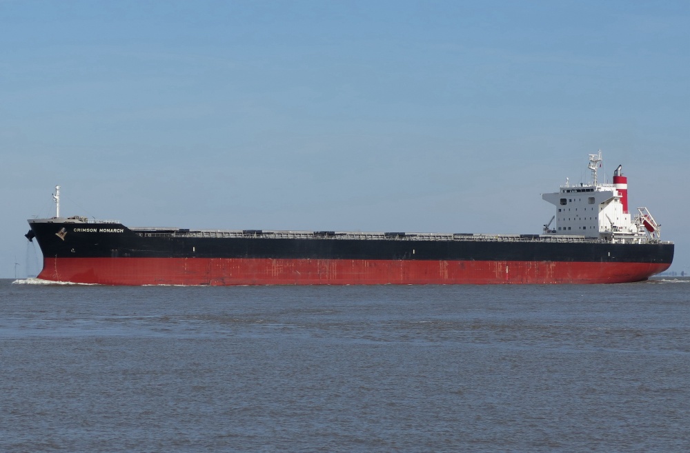 Massengutfrachter elbabwärts vor Cuxhaven-Altenbruch am 22.03.2015