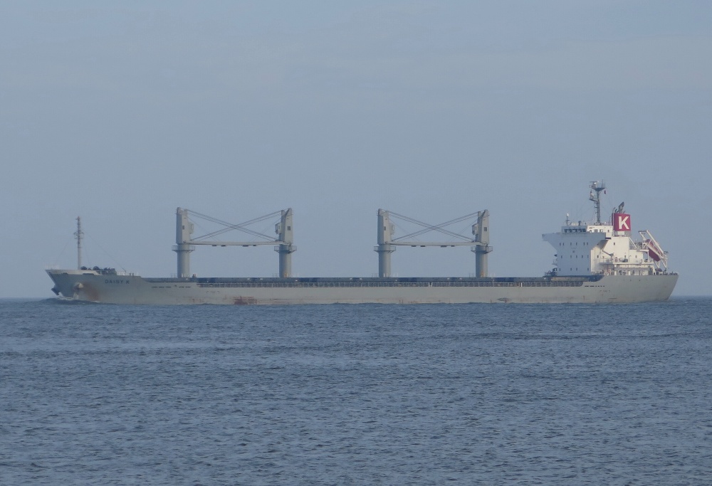 Frachtschiff elbabwärts vor Cuxhaven-Altenbruch am 23.11.2014