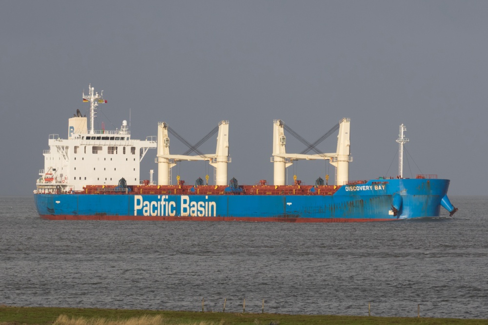 Frachtschiff elbaufwärts vor Cuxhaven-Altenbruch am 09.12.2018