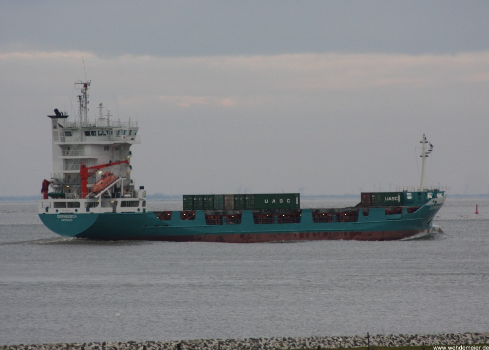 Frachtschiff elbaufwärts vor Cuxhaven-Altenbruch am 19.03.2011