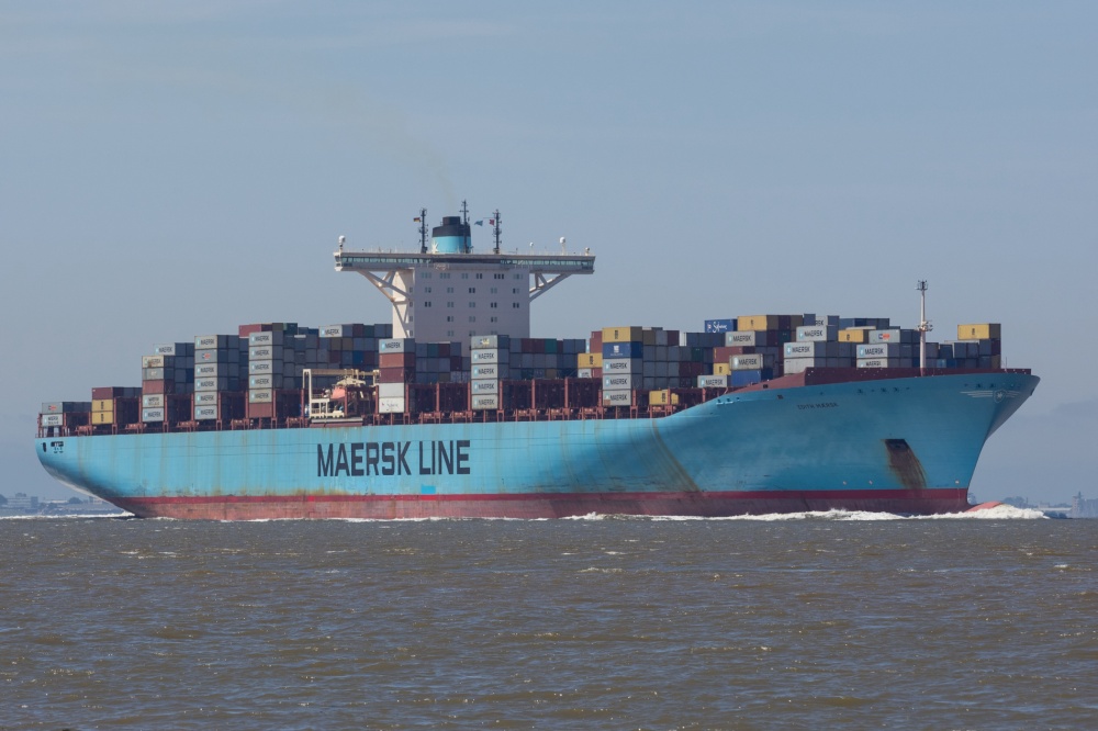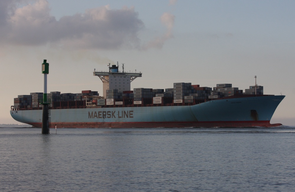 Containerschiff elbaufwärts in Höhe Glameyer Stack am 05.06.2016