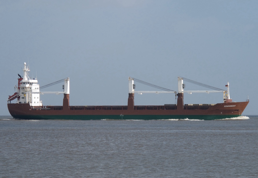 Frachtschiff elbaufwärts vor Cuxhaven-Altenbruch am 18.04.2012