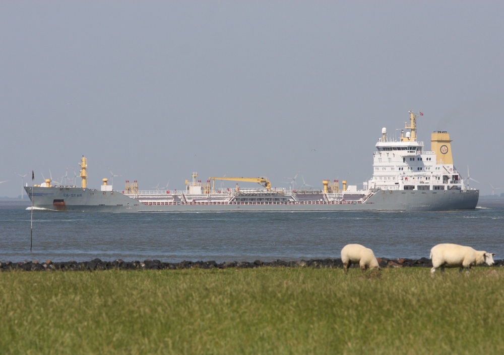 Tanker elbabwärts vor Cuxhaven-Altenbruch am 10.07.2014