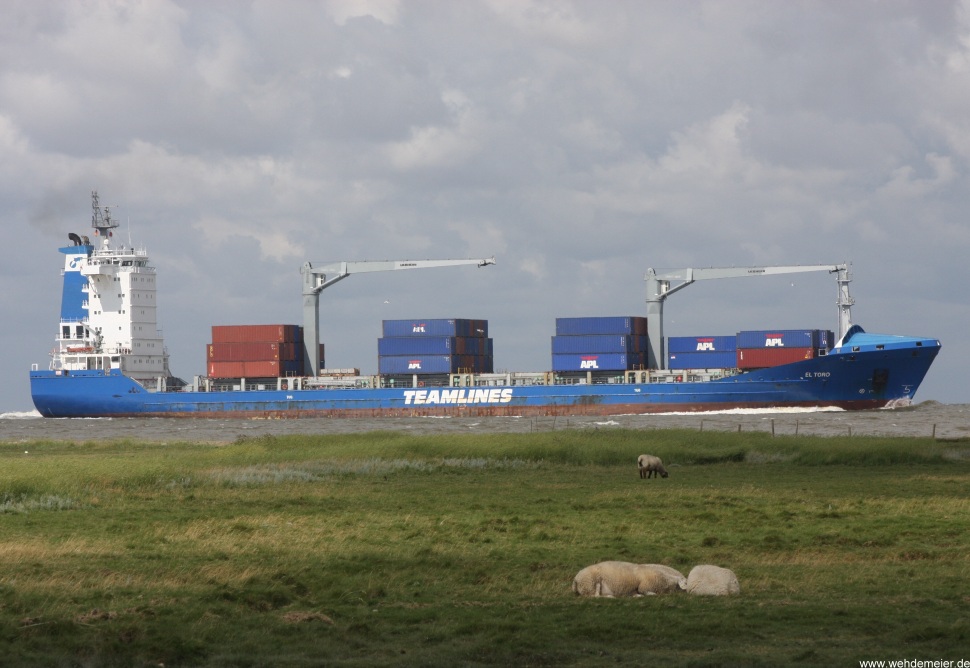 Frachtschiff elbaufwärts vor Cuxhaven-Altenbruch am 28.07.2010