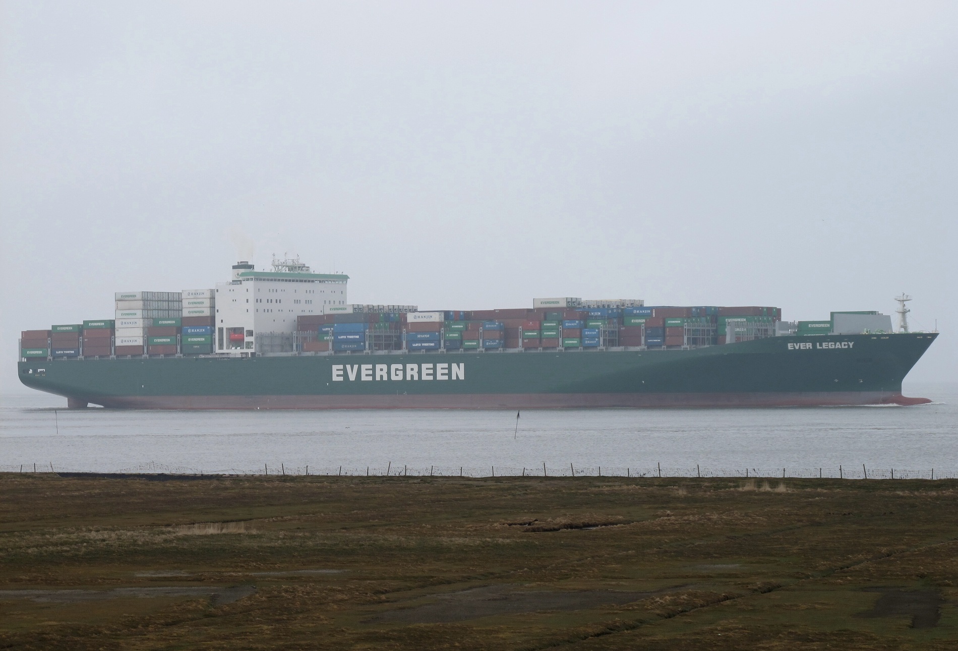 Containerschiff elbaufwärts vor Cuxhaven-Altenbruch am 12.04.2013