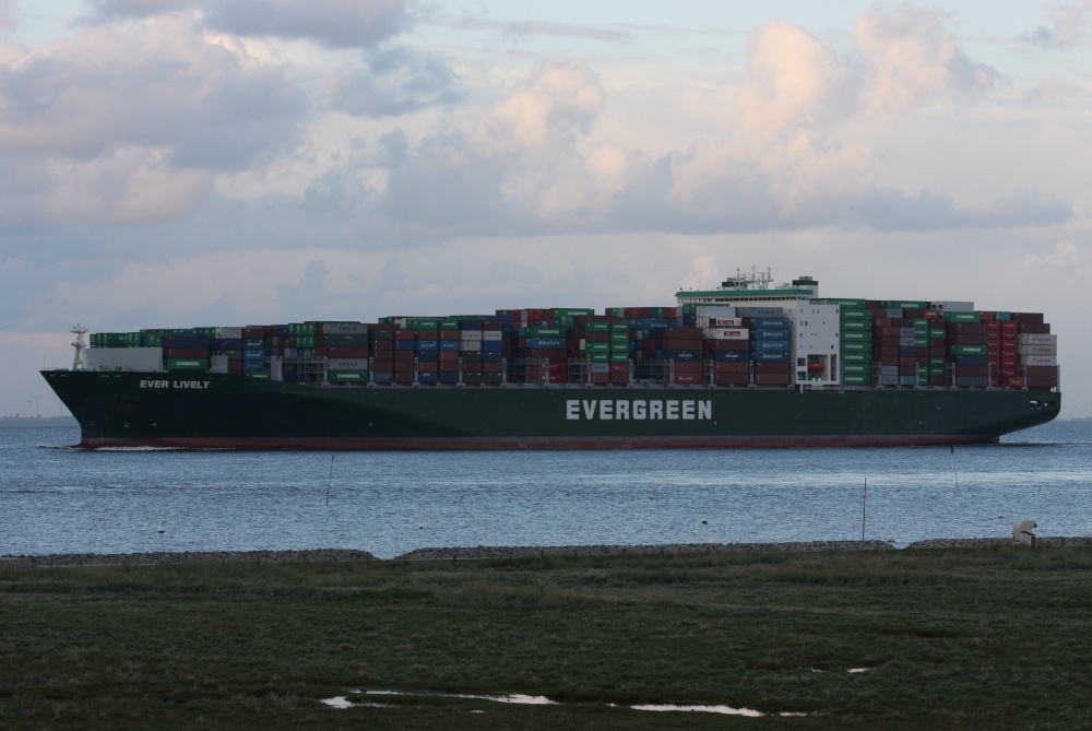 Containerschiff elbabwärts vor Cuxhaven-Altenbruch am 20.08.2014