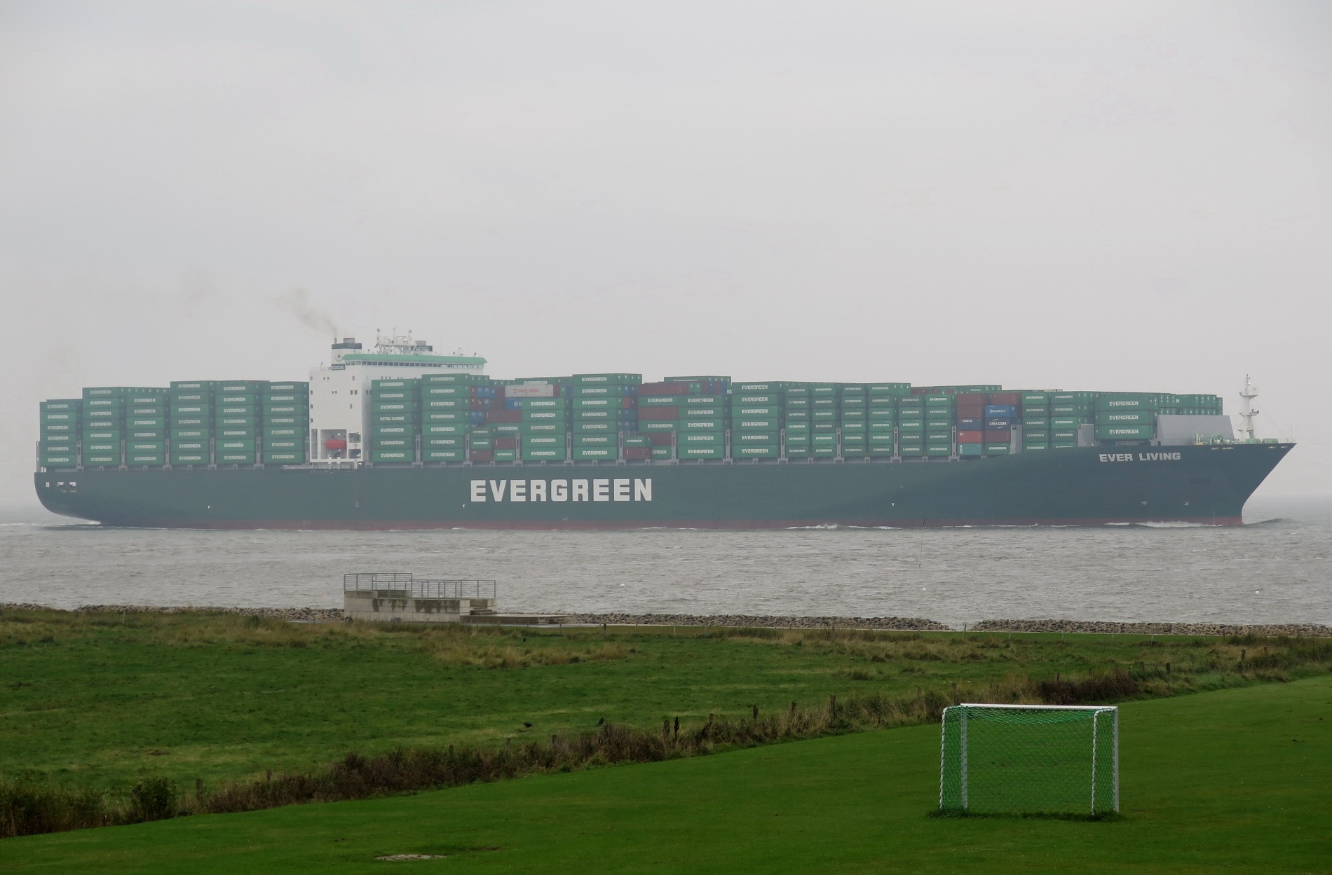 Containerschiff elbaufwärts vor Cuxhaven-Altenbruch am 16.10.2013