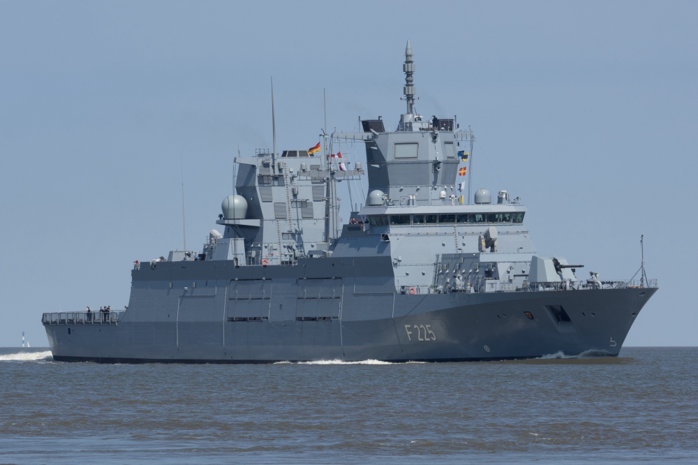 Deutsche Fregatte elbaufwärts vor Cuxhaven-Altenbruch am 23.06.2019