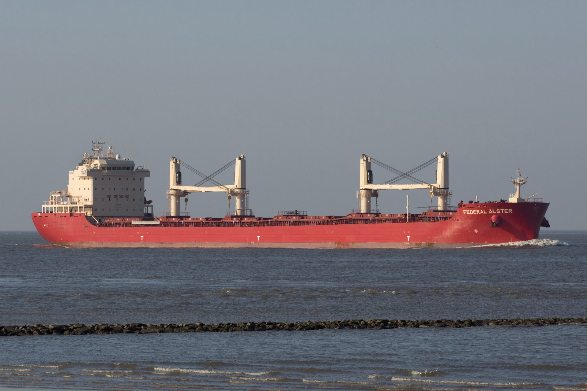 Frachtschiff elbaufwärts in Höhe Glameyer Stack am 15.10.2017