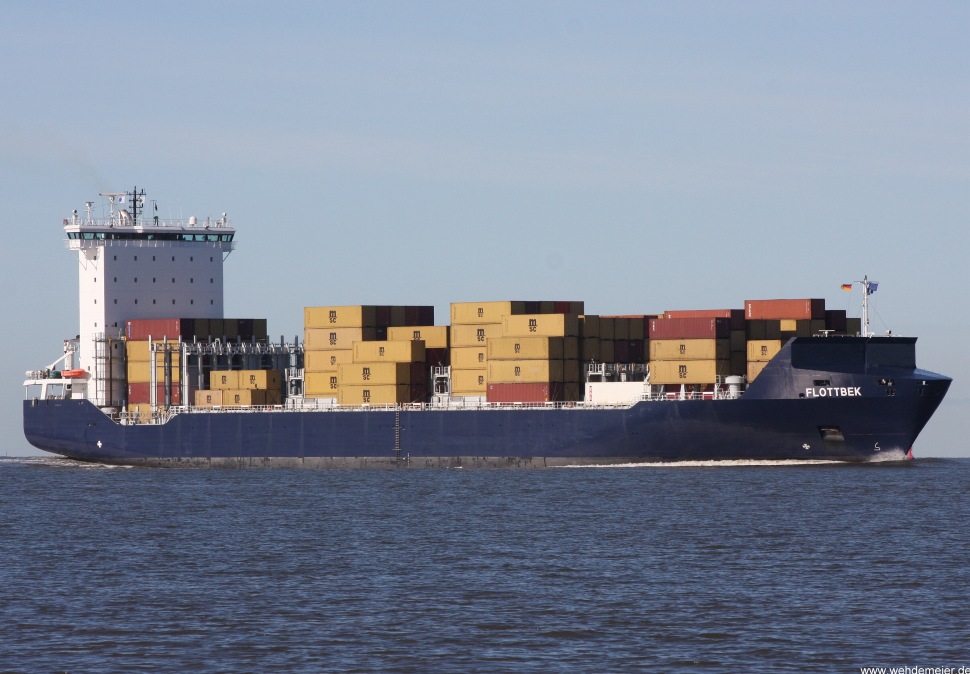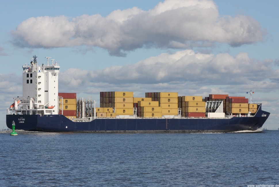 Containerschiff elbaufwärts vor Cuxhaven-Altenbruch am 18.10.2009