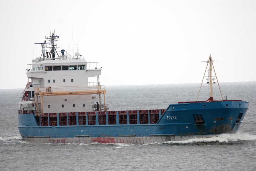 Frachtschiff elbaufwärts vor Cuxhaven am 22.06.2013