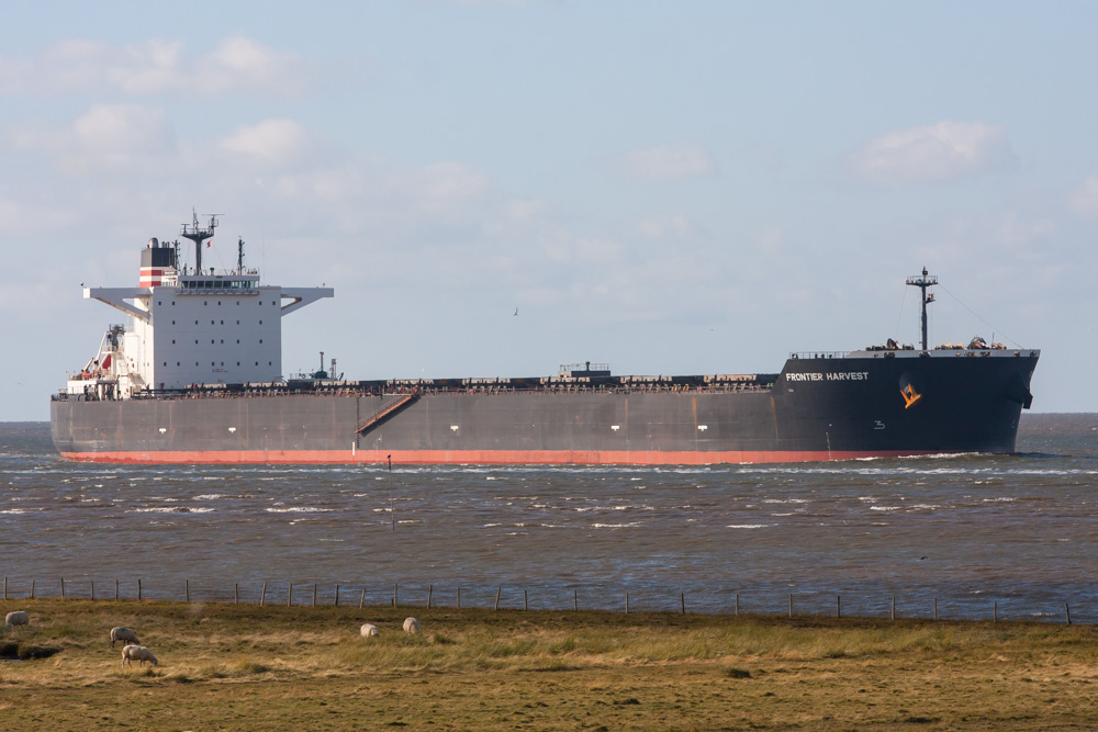 Massengutfrachter elbaufwärts vor Cuxhaven-Altenbruch am 08.08.2015