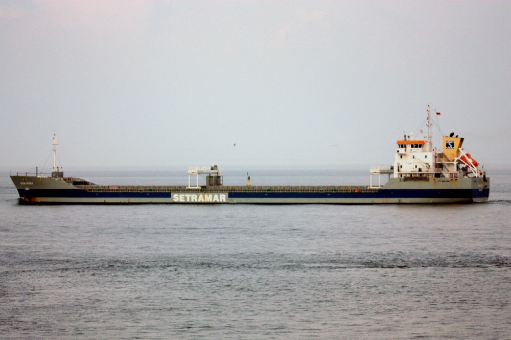 Frachtschiff elbabwärts vor Cuxhaven am 11.10.2014