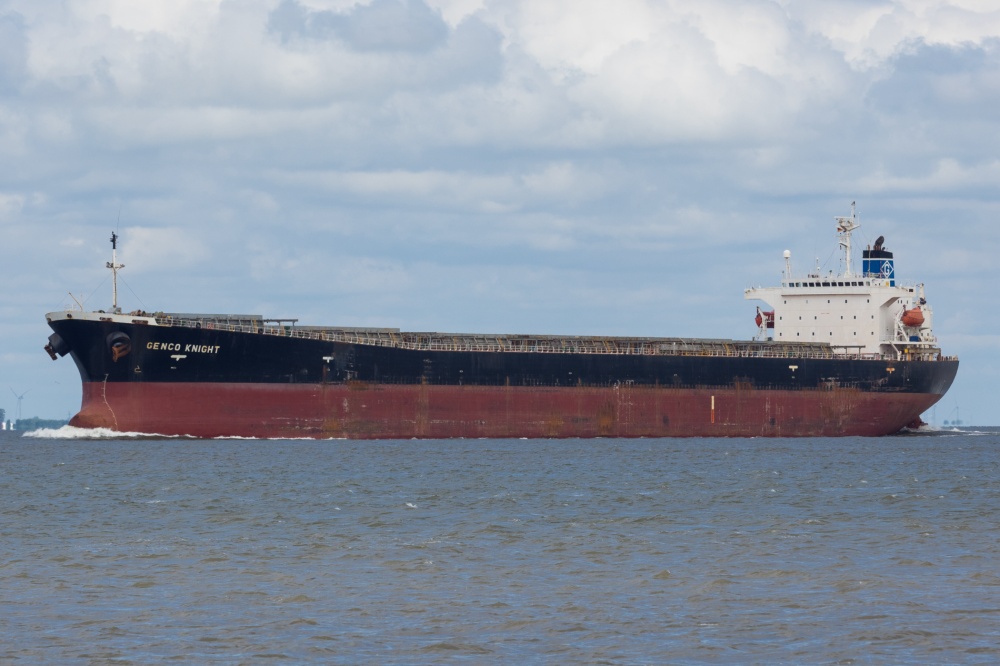Massengutfrachter elbabwärts vor Cuxhaven-Altenbruch am 18.06.2016