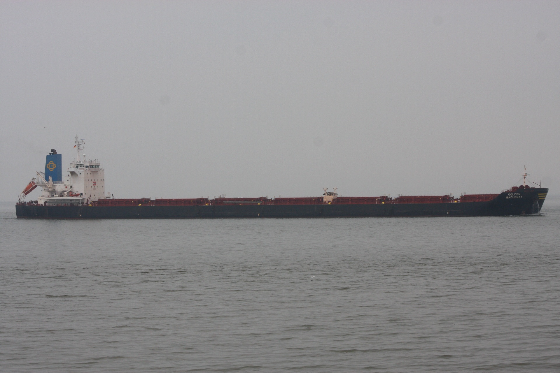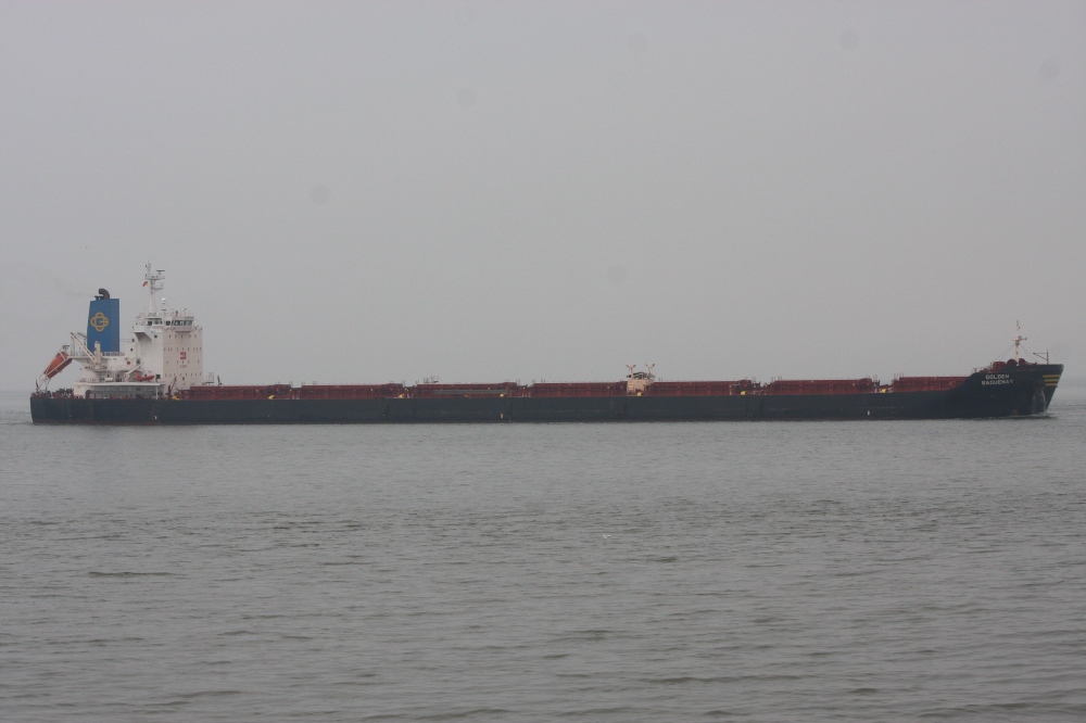 Massengutfrachter elbaufwärts vor Cuxhaven-Groden am 08.08.2009 bei leichtem Regen