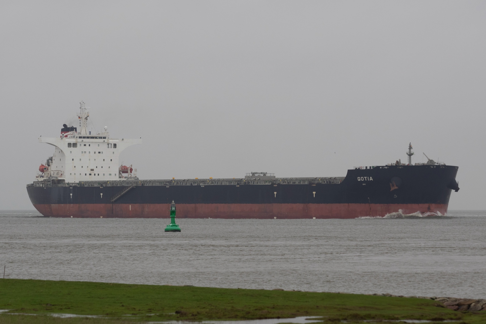 Massengutfrachter elbaufwärts vor Cuxhaven-Altenbruch am 23.12.2018
