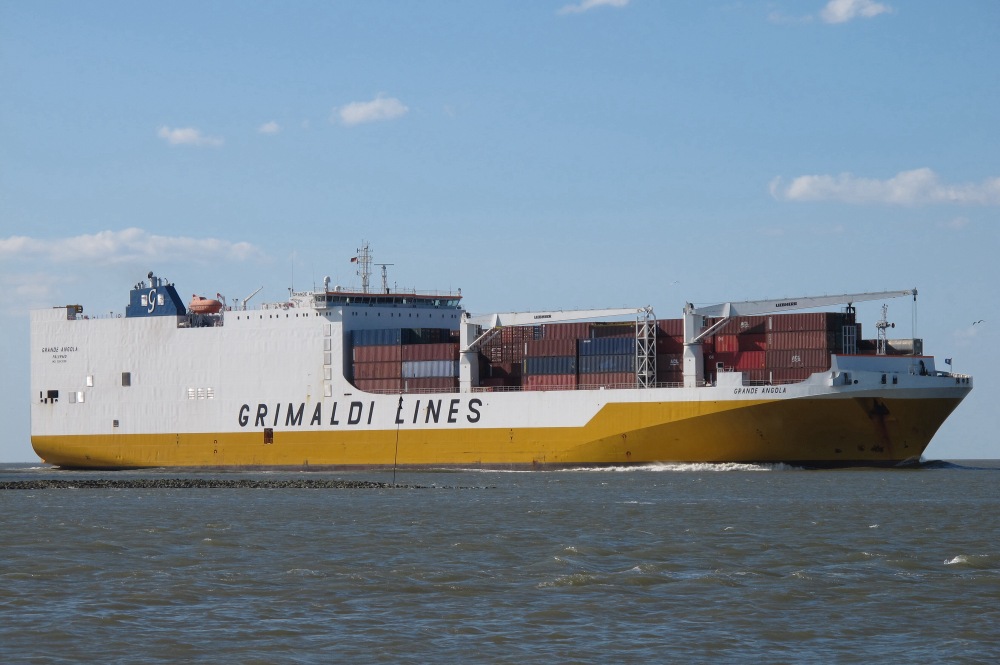 Frachtschiff elbaufwärts in Höhe Glameyer Stack am 12.08.2012