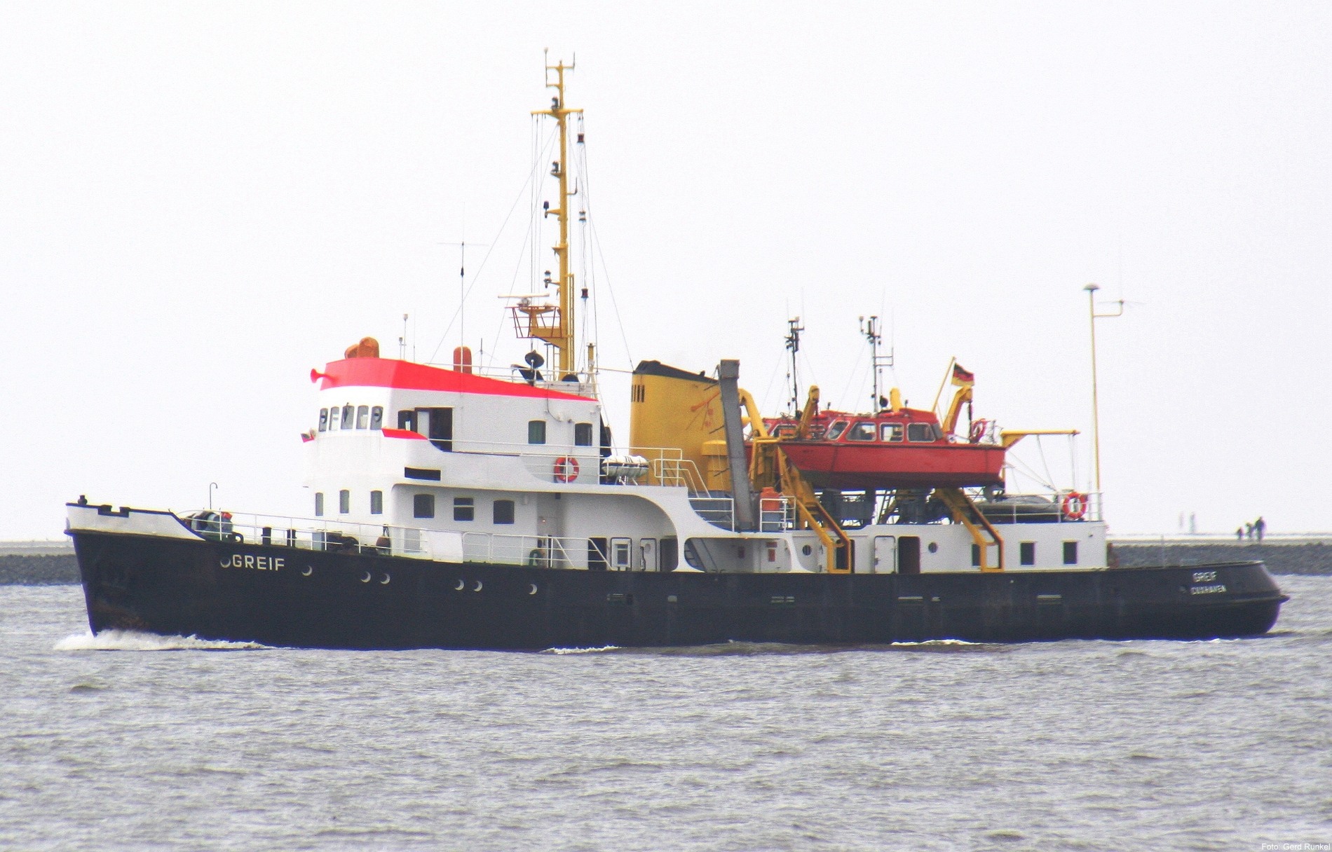 Vermessungsschiff elbaufwärts am Döser Leitdamm am 22.08.2007