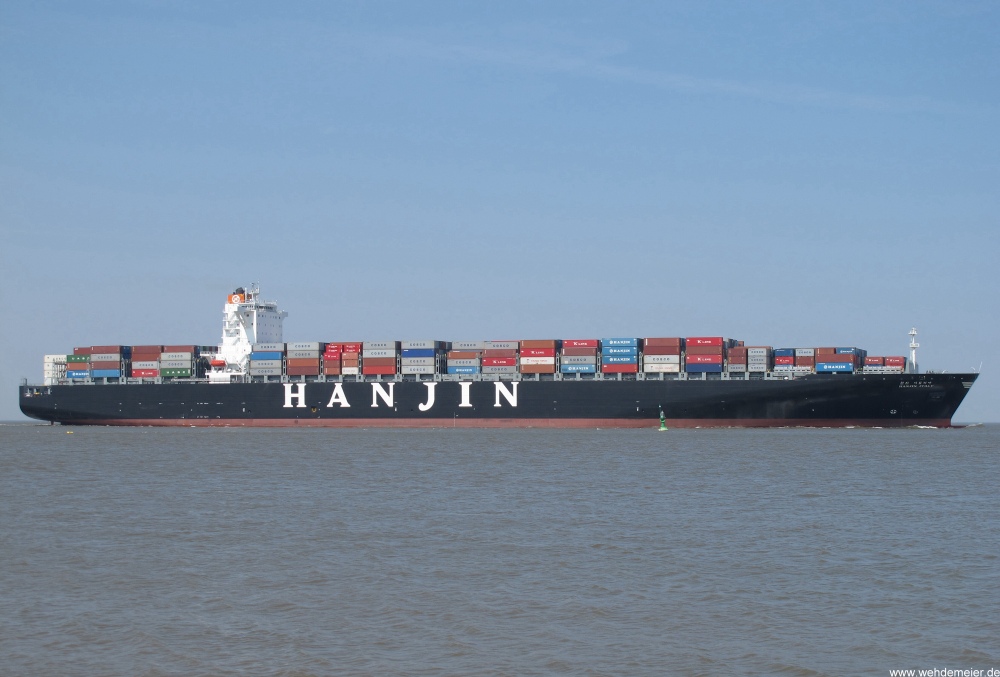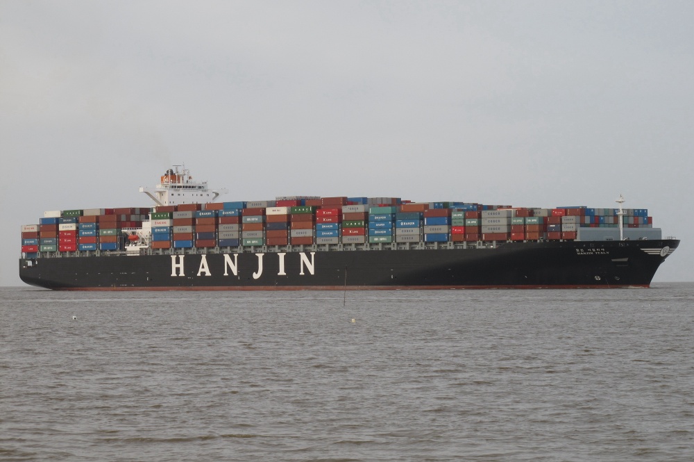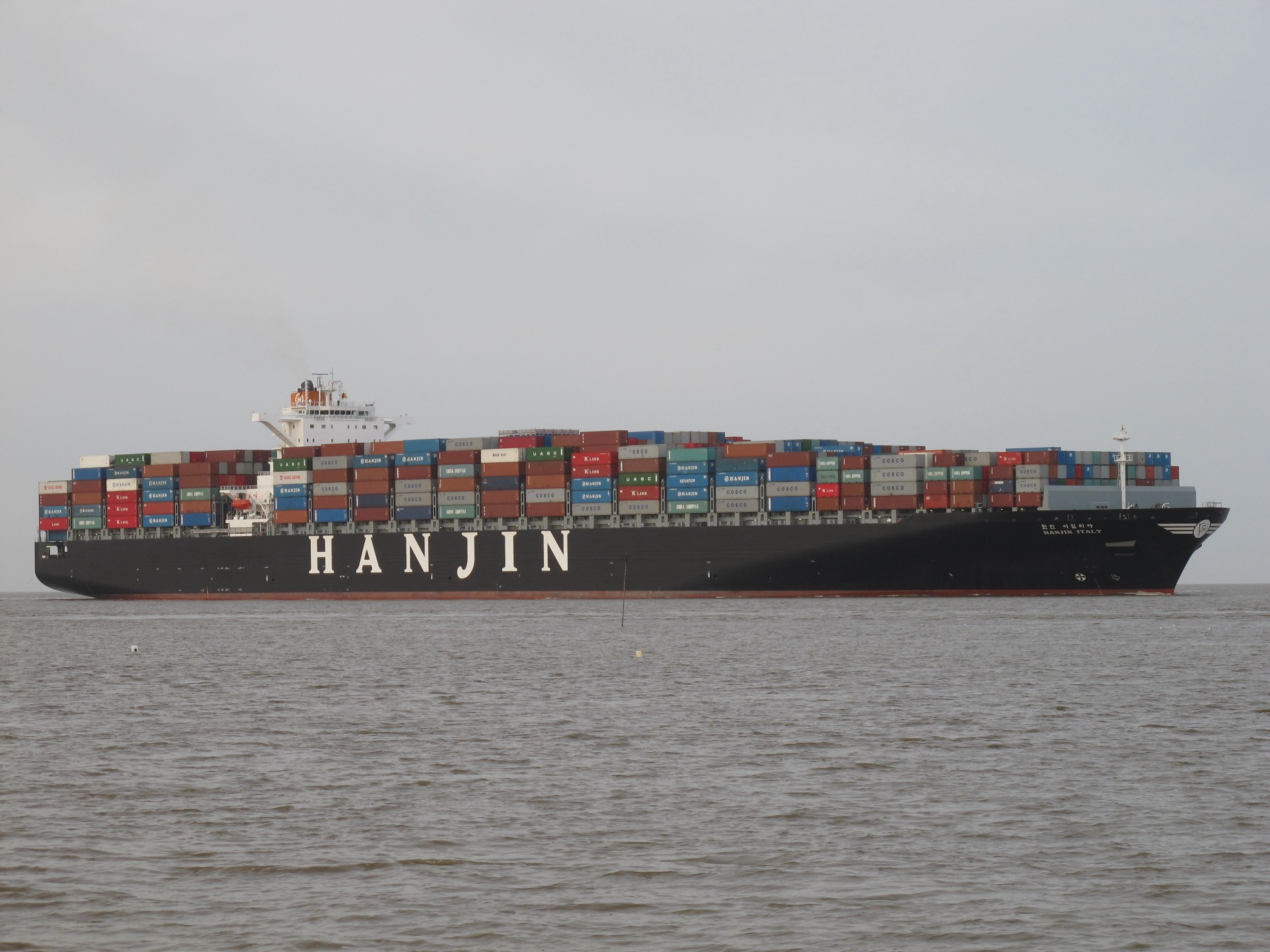 Containerschiff elbaufwärts in Höhe Glameyer Stack am 07.05.2011