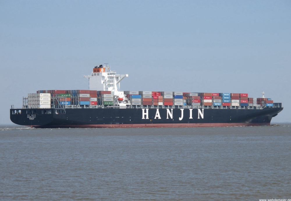 Containerschiff einkommend vor Cuxhaven-Altenbruch am 14.01.2012