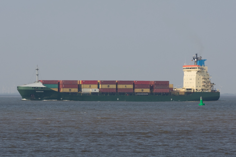 Frachtschiff elbabwärts vor Cuxhaven-Altenbruch am 13.05.2018