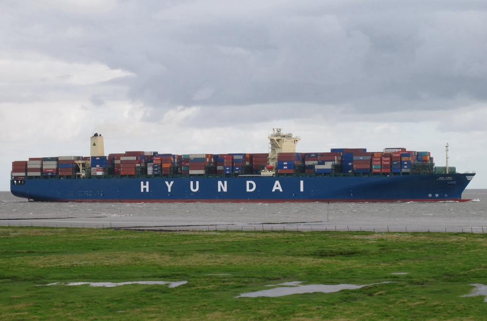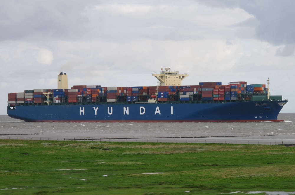 Containerschiff elbaufwärts vor Cuxhaven-Altenbruch am 21.07.2012