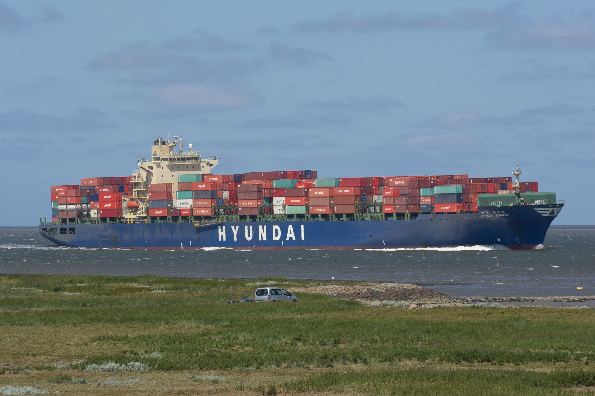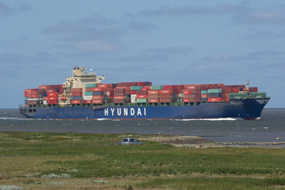 Containerschiff elbaufwärts vor Cuxhaven-Altenbruch am 08.07.2018