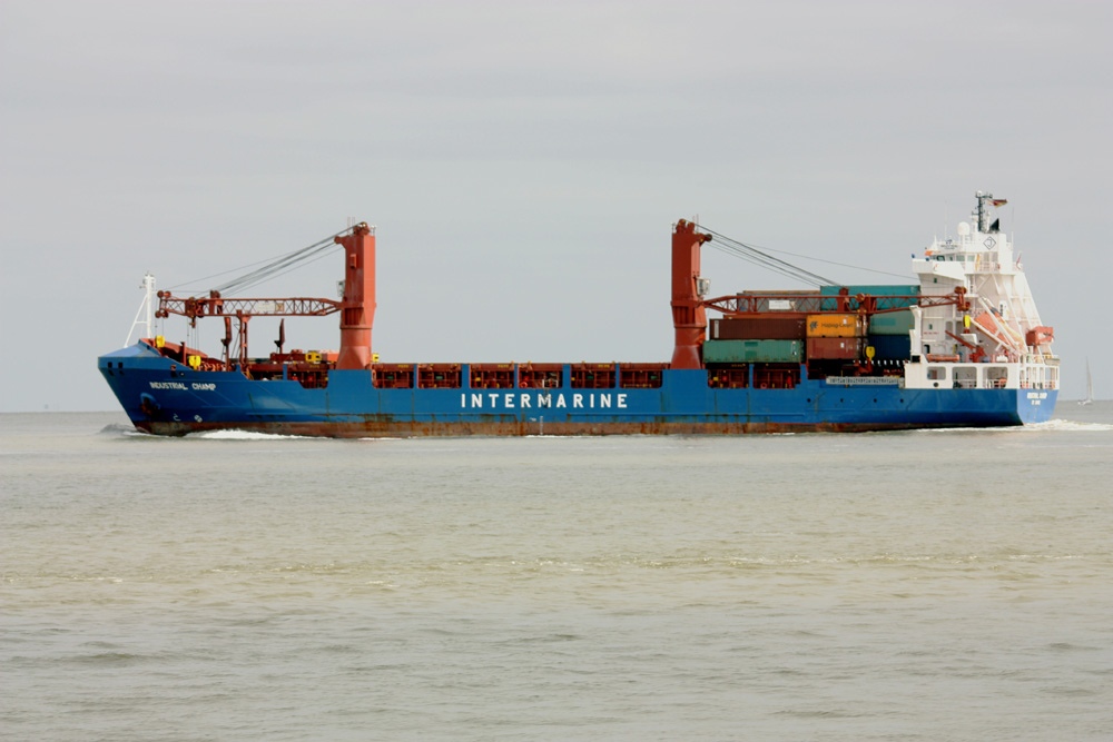 Frachtschiff elbabwärts vor Cuxhaven am 15.05.2015