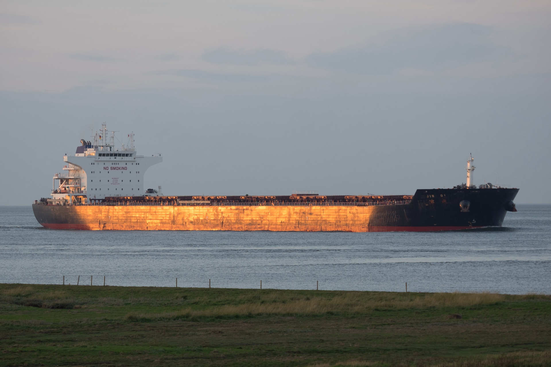 Massengutfrachter elbaufwärts vor Cuxhaven-Altenbruch am 19.09.2018