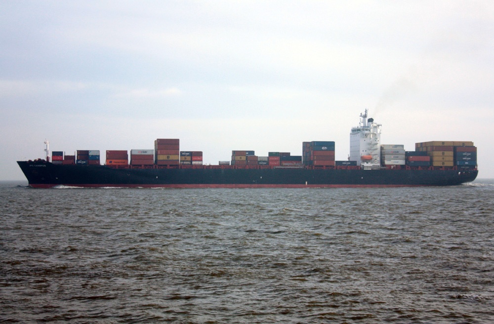 Containerschiff elbabwärts vor Cuxhaven am 01.03.2014