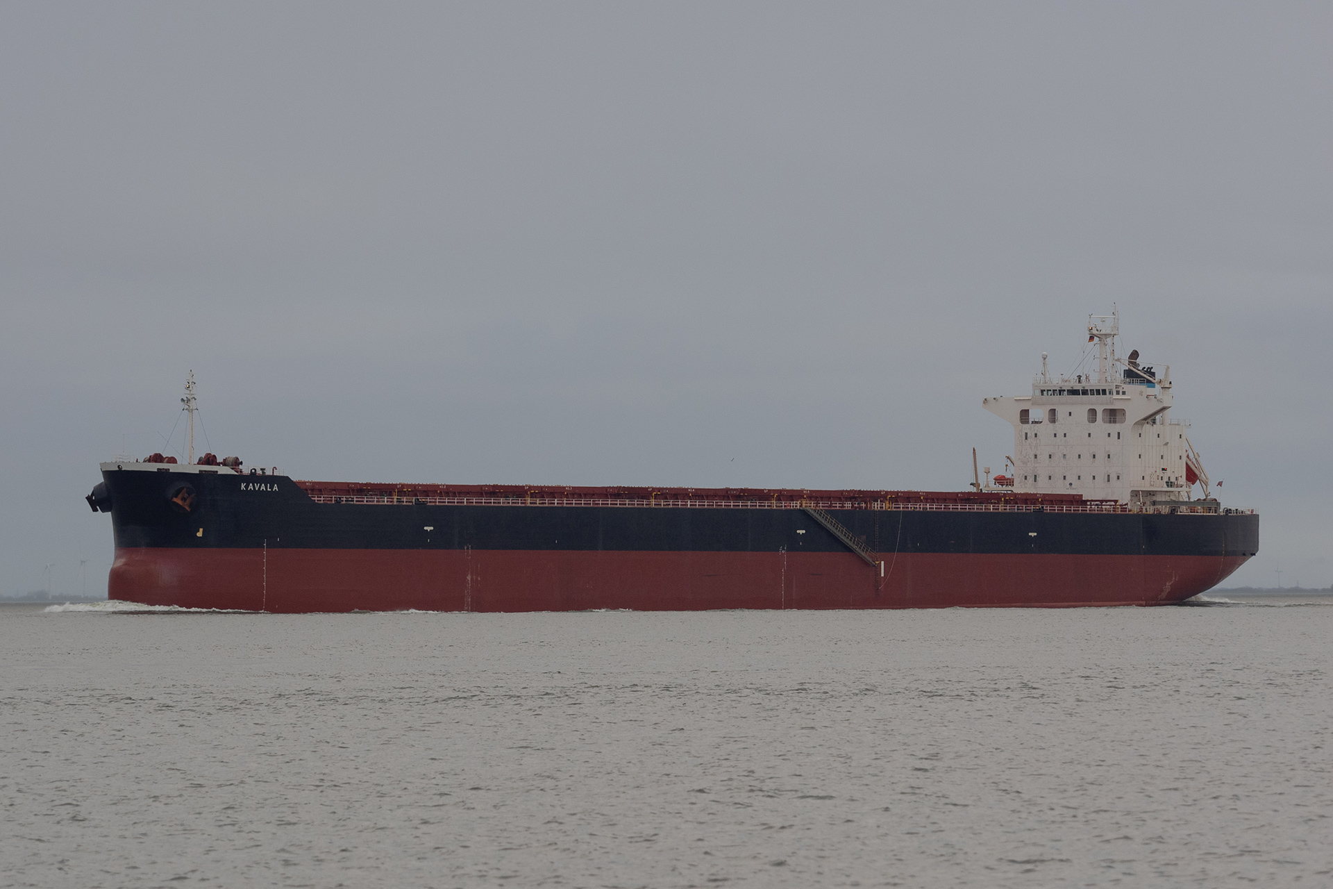 Massengutfrachter elbabwärts vor Cuxhaven-Altenbruch am 25.12.2019