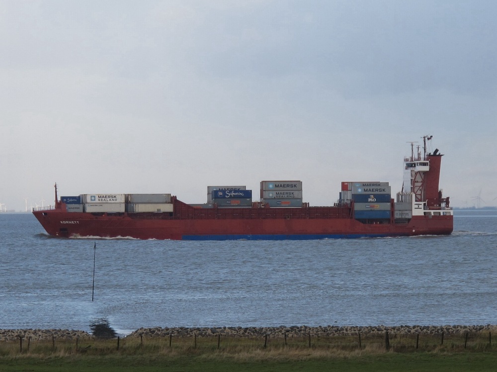 Frachtschiff elbabwärts vor Cuxhaven-Altenbruch am 03.12.2011