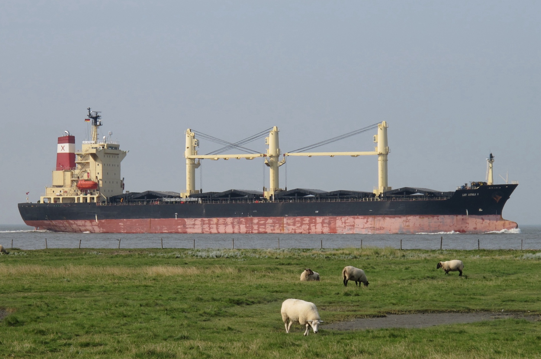 Frachtschiff elbaufwärts vor Cuxhaven-Altenbruch am 03.08.2011