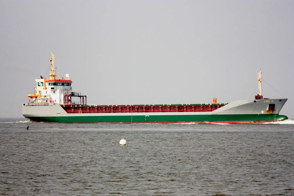Frachtschiff elbaufwärts vor Cuxhaven-Altenbruch am 07.09.2013