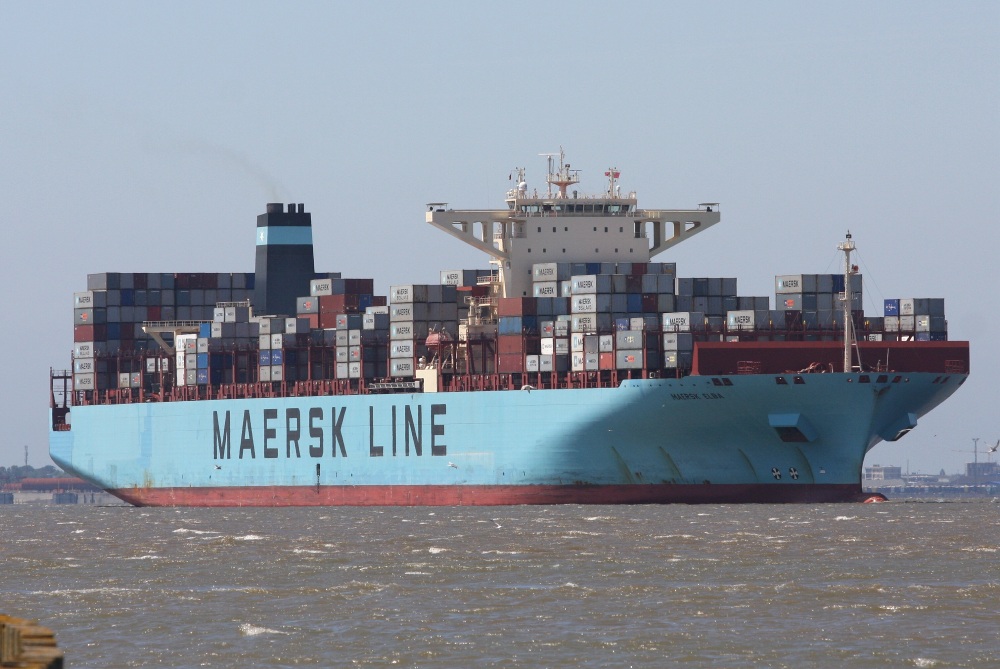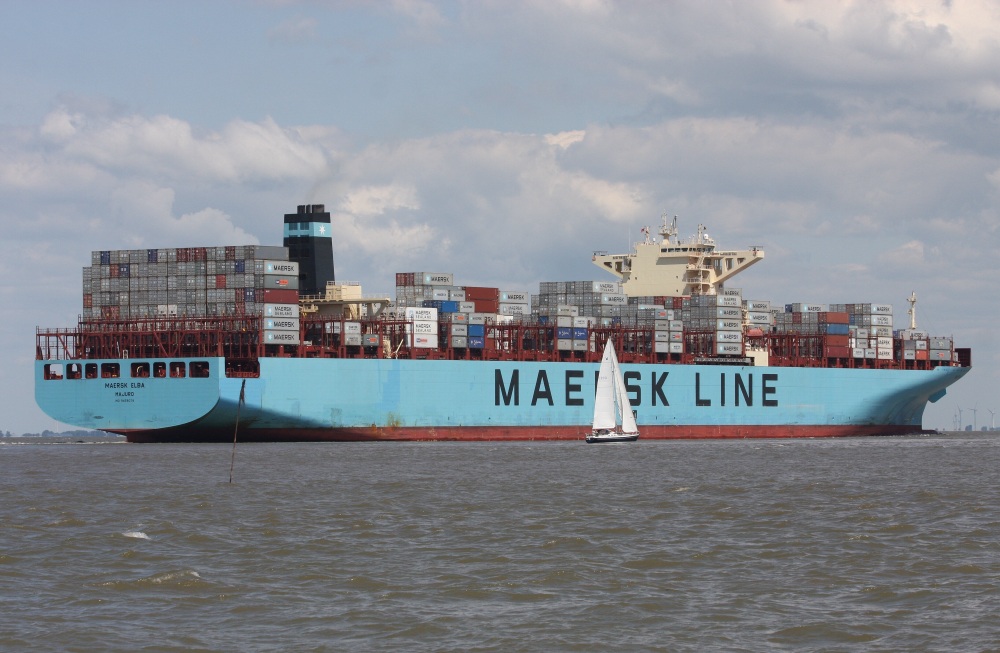 Containerschiff elbaufwärts in Höhe Glameyer Stack am 15.06.2014