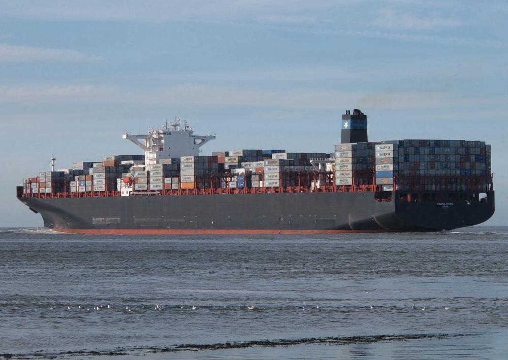 Containerschiff seewärts fahrend vor Cuxhaven-Altenbruch am 27.09.2011