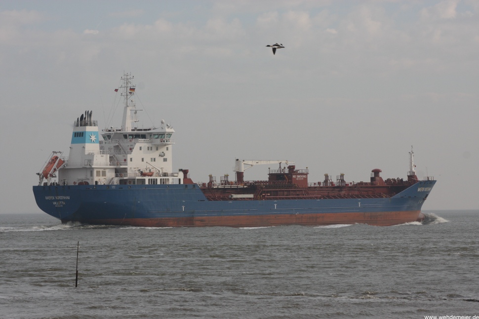 Tanker einkommend vor Cuxhaven-Altenbruch am 26.02.2011