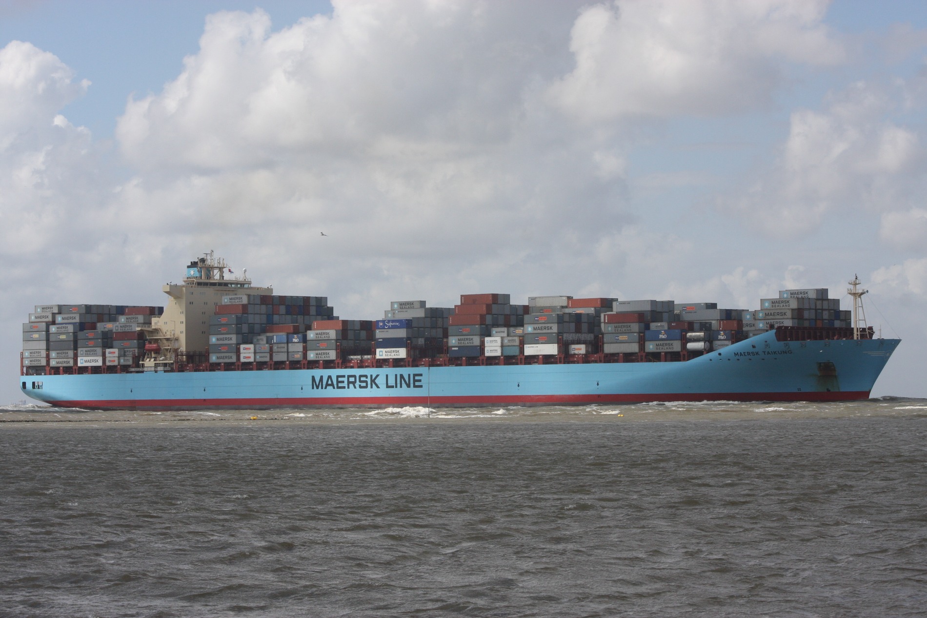 Containerschiff elbaufwärts in Höhe Glameyer Stack am 19.06.2009