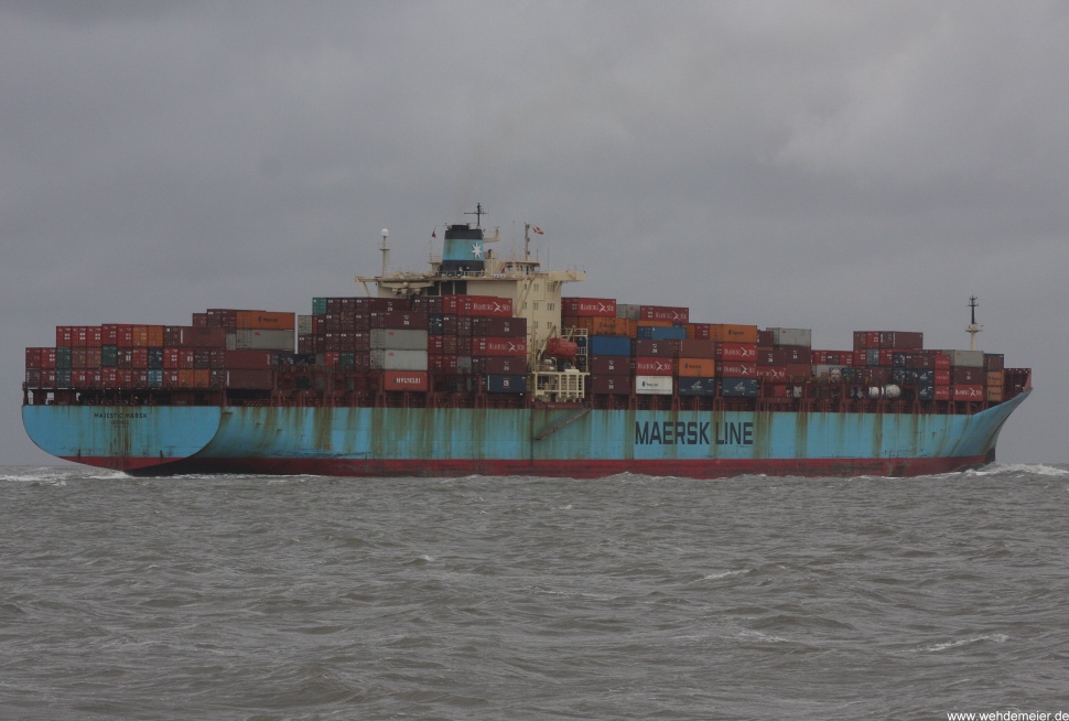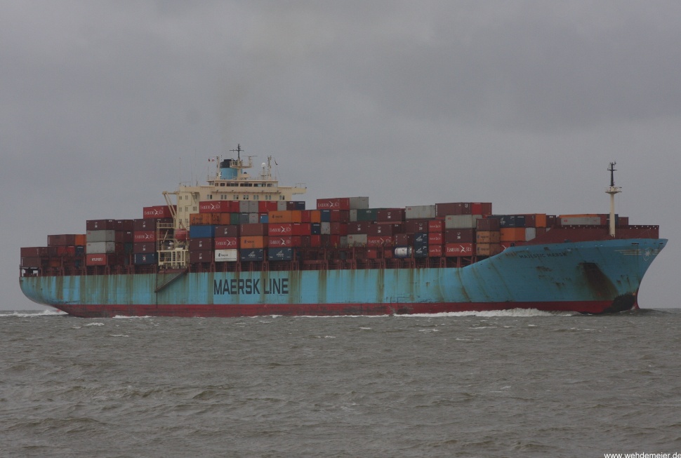 Containerschiff elbaufwärts vor Cuxhaven-Altenbruch am 18.05.2010