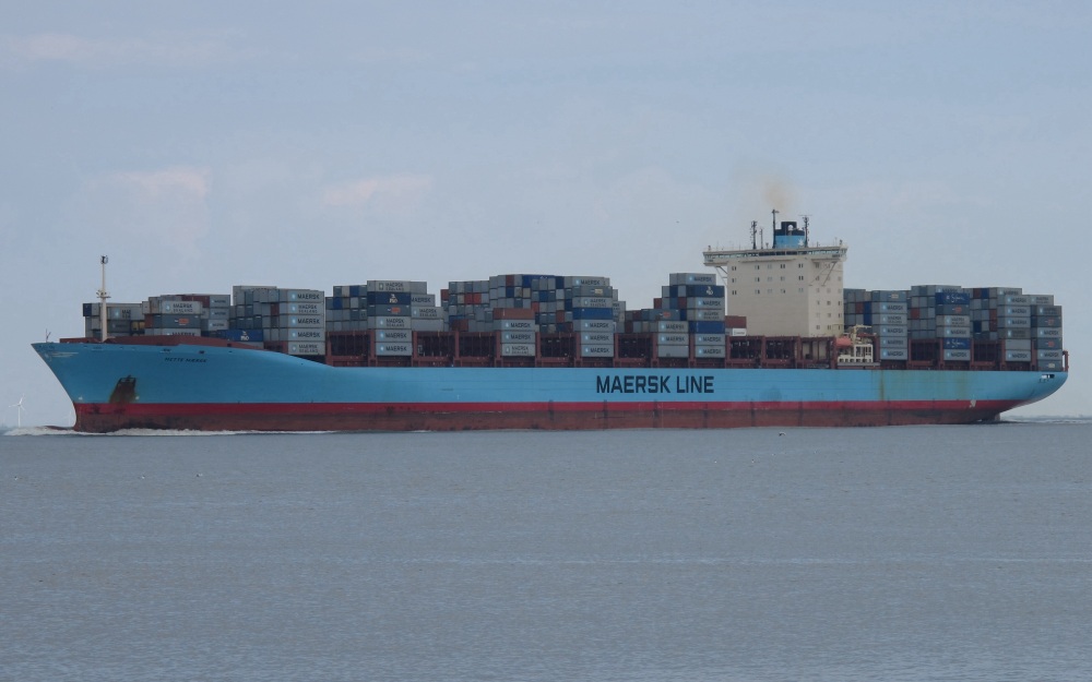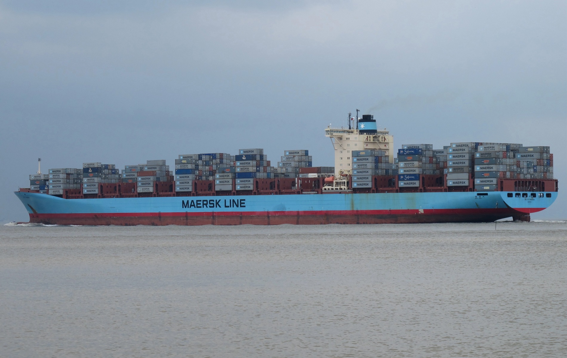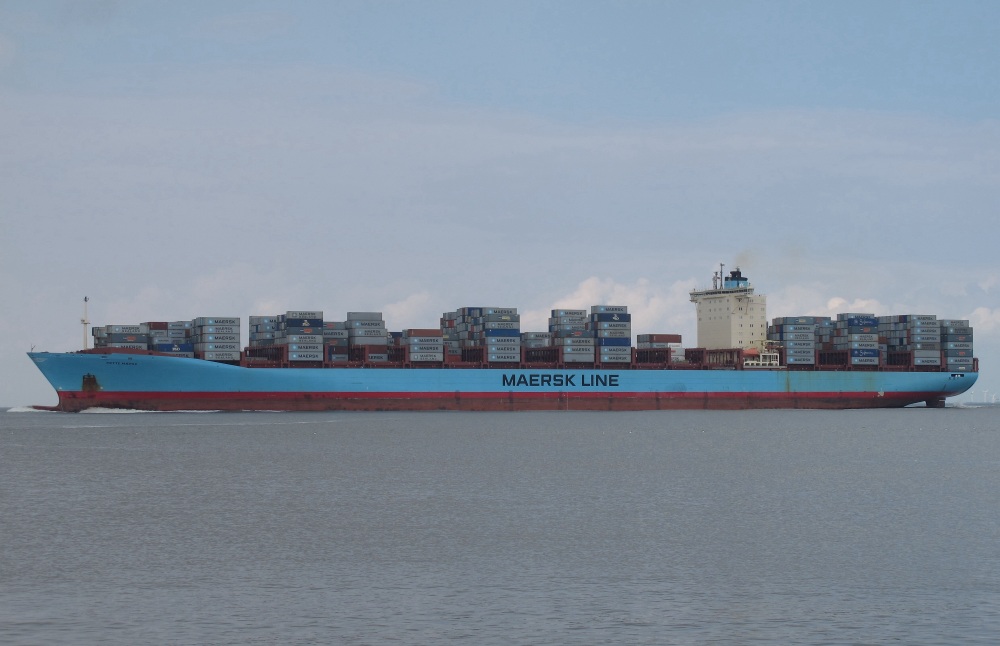 Containerschiff elbabwärts in Höhe Glameyer Stack am 22.04.2012