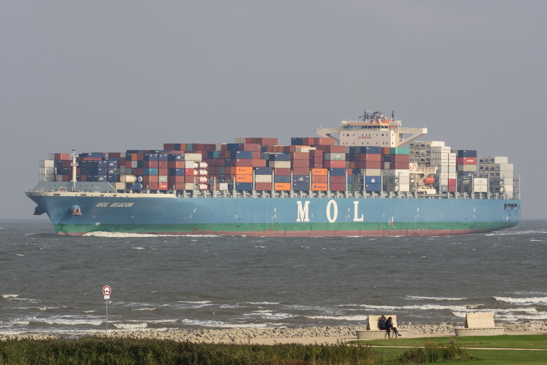 Containerschiff elbabwärts vor Cuxhaven-Altenbruch am 14.10.2016