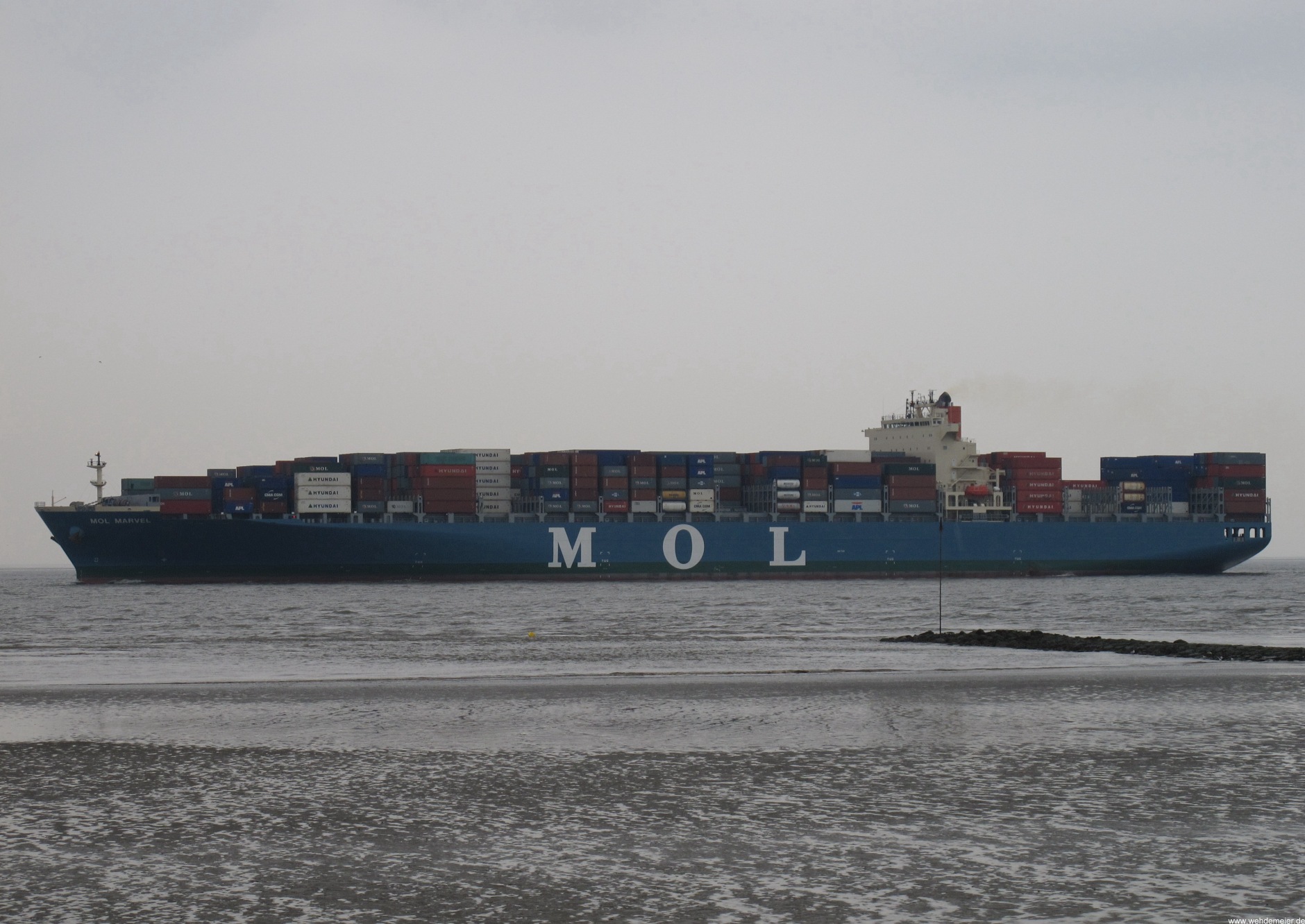 Containerschiff elbabwärts vor Cuxhaven-Altenbruch am 18.05.2011