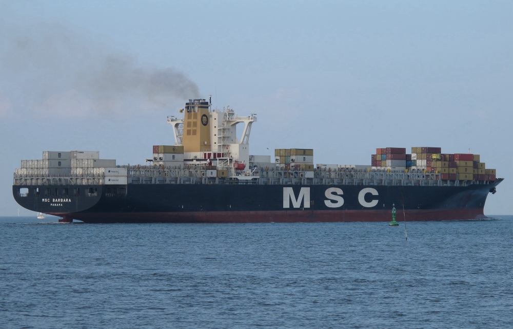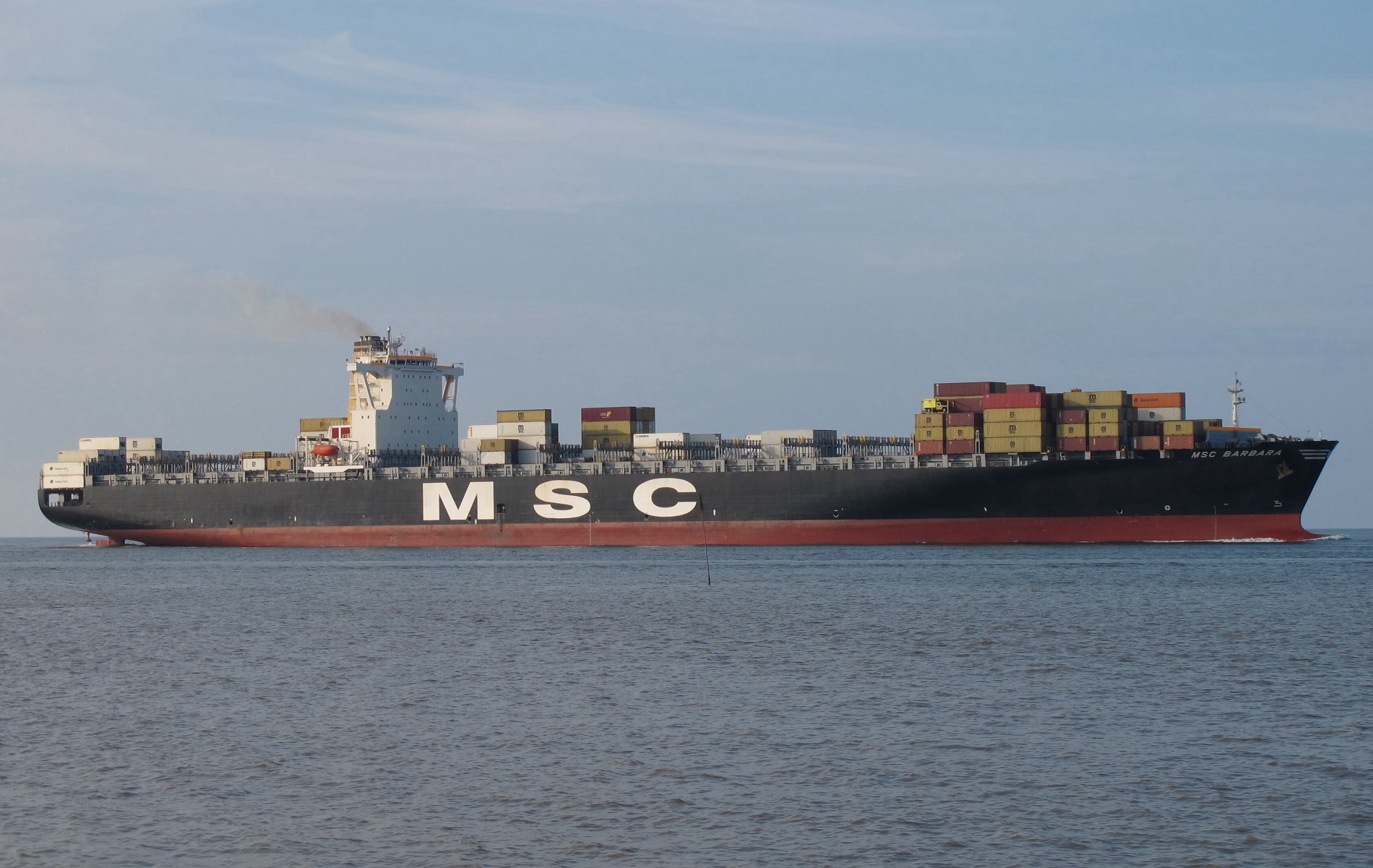 Containerschiff elbaufwärts vor Cuxhaven-Altenbruch am 21.08.2012