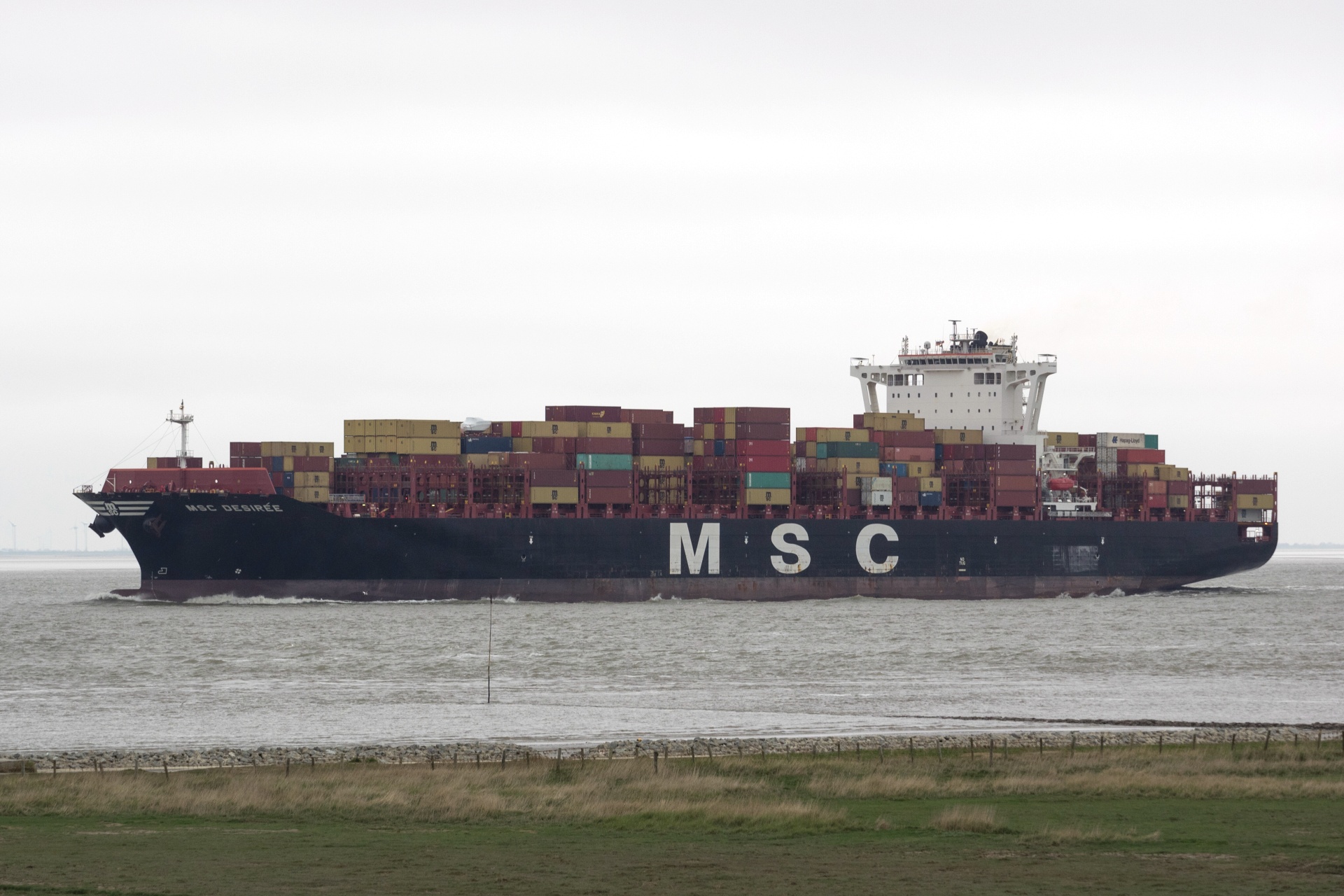 Containerschiff elbabwärts vor Cuxhaven-Altenbruch am 04.04.2019