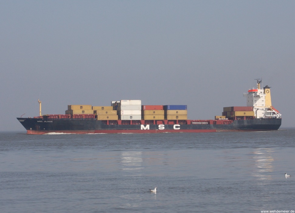 Containerschiff elbabwärts vor Cuxhaven-Groden am 12.04.2009