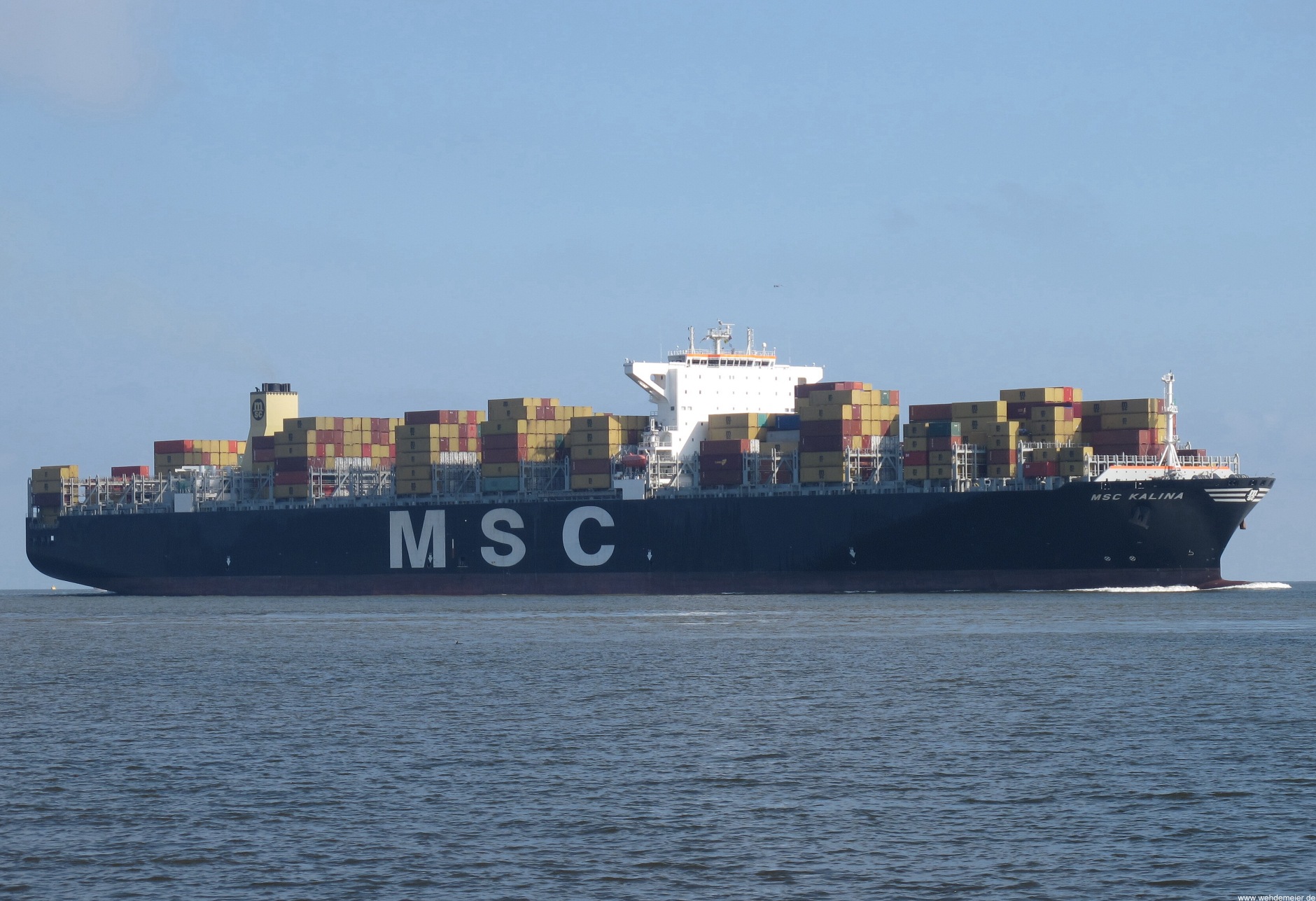 Containerschiff elbaufwärts vor Cuxhaven-Altenbruch am 11.07.2011